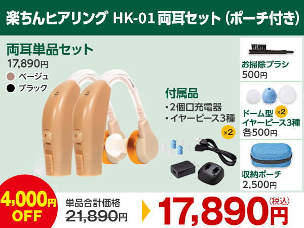 楽ちんヒアリング HK-01 両耳セット(ベージュ)
