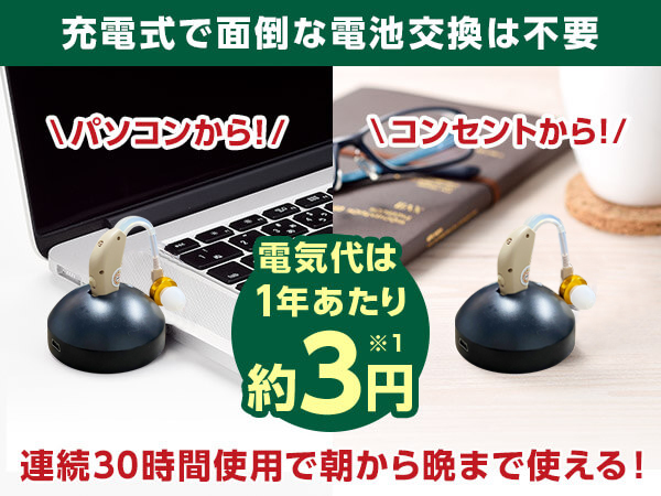 家族との会話が聞き取りづらく思い切って購入。ボリューム1でもよく聞こえ、自分の声もクリア。電池交換不要で買って良かった。